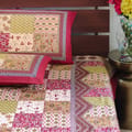 Bring home the charm of traditional art with our Kalamkari Patchwork Bliss Bedsheet. Featuring a vibrant fusion of floral, geometric, and folk-inspired block prints in red, green, mustard, and ivory, this bedsheet showcases a beautiful handcrafted patchwork design. The intricate border with zigzag and tribal patterns adds a rich ethnic touch, making it perfect for both classic and contemporary interiors. Made from soft, breathable cotton for ultimate comfort.