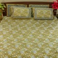 Bring home a touch of tradition with this beautifully printed Mustard Blossom Bedsheet. Set against a warm mustard-yellow base, the design features delicate white floral motifs and leafy vines, creating a soft, earthy vibe. The coordinated pillow covers with bold black borders add a structured finish to the set. Perfect for adding a cozy and elegant charm to your bedroom, this cotton bedsheet blends comfort with classic Indian aesthetics.