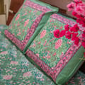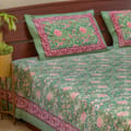 यह रस्टिक ब्लूम बेडशीट आपके बेडरूम में एक ताज़ा और सुकून भरा माहौल लाती है। हल्के हरे रंग के बेस पर बिछी इस बेडशीट में गुलाबी और सफ़ेद रंगों में हाथ से ब्लॉक किए गए नाज़ुक फूलों के डिज़ाइन हैं, जिन्हें नीले और पत्तेदार लताओं की झलक से और भी निखारा गया है। इसके मैचिंग पिलो कवर में ज़्यादा बारीक फूलों वाला फ्रेम है, जो पूरे लुक को खूबसूरती से एक साथ जोड़ता है। हवादार कॉटन से बनी, यह रोज़मर्रा के आराम के साथ-साथ एक खूबसूरत एहसास के लिए एकदम सही है।