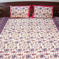 Crafted in soft, breathable cotton, the bedsheet offers both cultural richness and everyday comfort. Matching pillow covers complete the look, making it ideal for those who appreciate ethnic charm and handcrafted aesthetics in home decor.
