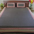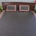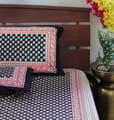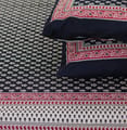 Elevate your bedroom aesthetics with the Midnight Charm Kalamkari Bedsheet, featuring a deep black base adorned with intricate traditional floral motifs in ivory. Accented by a beautifully detailed red and cream border, this handcrafted piece radiates elegance and cultural richness. Made from soft, breathable cotton for ultimate comfort, it includes two matching pillow covers to complete the sophisticated look.