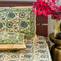 हमारे गुलदाउदी फ्लोरल बेडशीट के साथ अपने बेडरूम में प्रकृति का एक ताज़ा स्पर्श लाएँ। मुलायम, सांस लेने योग्य कॉटन से तैयार की गई इस बेडशीट में गर्म बेज बैकग्राउंड के खिलाफ हरे और नीले रंग के सुखदायक रंगों में एक नाजुक गुलदाउदी-प्रेरित (गुलदाउदी) पुष्प प्रिंट है। हाथ से ब्लॉक प्रिंटेड पैटर्न निर्बाध रूप से दोहराया जाता है, जो आपके बिस्तर को एक शांत और सुरुचिपूर्ण रूप देता है। मैचिंग पिलो कवर के साथ पूरा, यह सेट आपके स्थान पर एक आकर्षक, मिट्टी का माहौल जोड़ता है - पारंपरिक मोड़ के साथ रोजमर्रा के आराम के लिए एकदम सही।